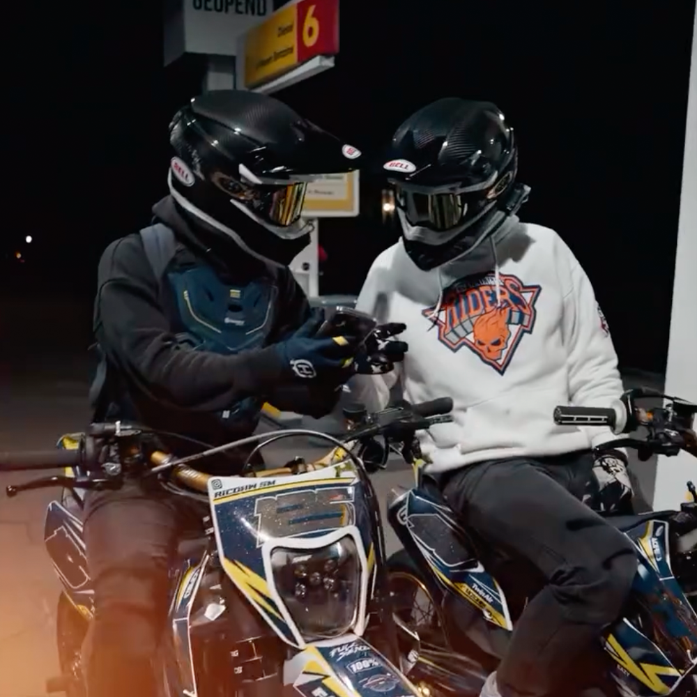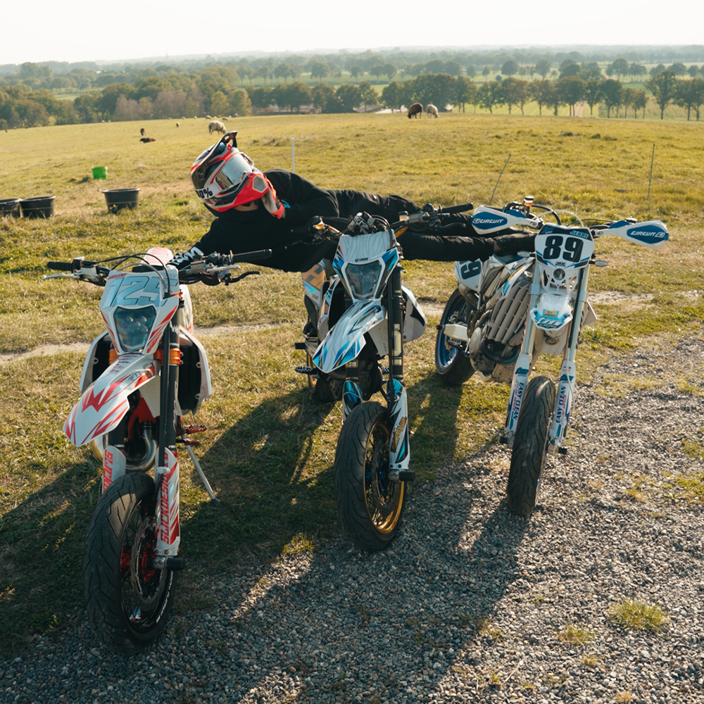Uns geht es darum, neue Fahrer zu inspirieren, eine Kultur aufzubauen, in der wir uns gegenseitig voranbringen, und die Messlatte für den Supermoto-Lebensstil immer höher zu legen. Ob es darum geht, unsere Ausrüstung zu tragen, neue Tricks zu lernen oder lebenslange Freundschaften zu schließen – wir bauen eine Community auf, in der jeder für sich da ist. Wir möchten, dass sich jeder hier zugehörig fühlt.